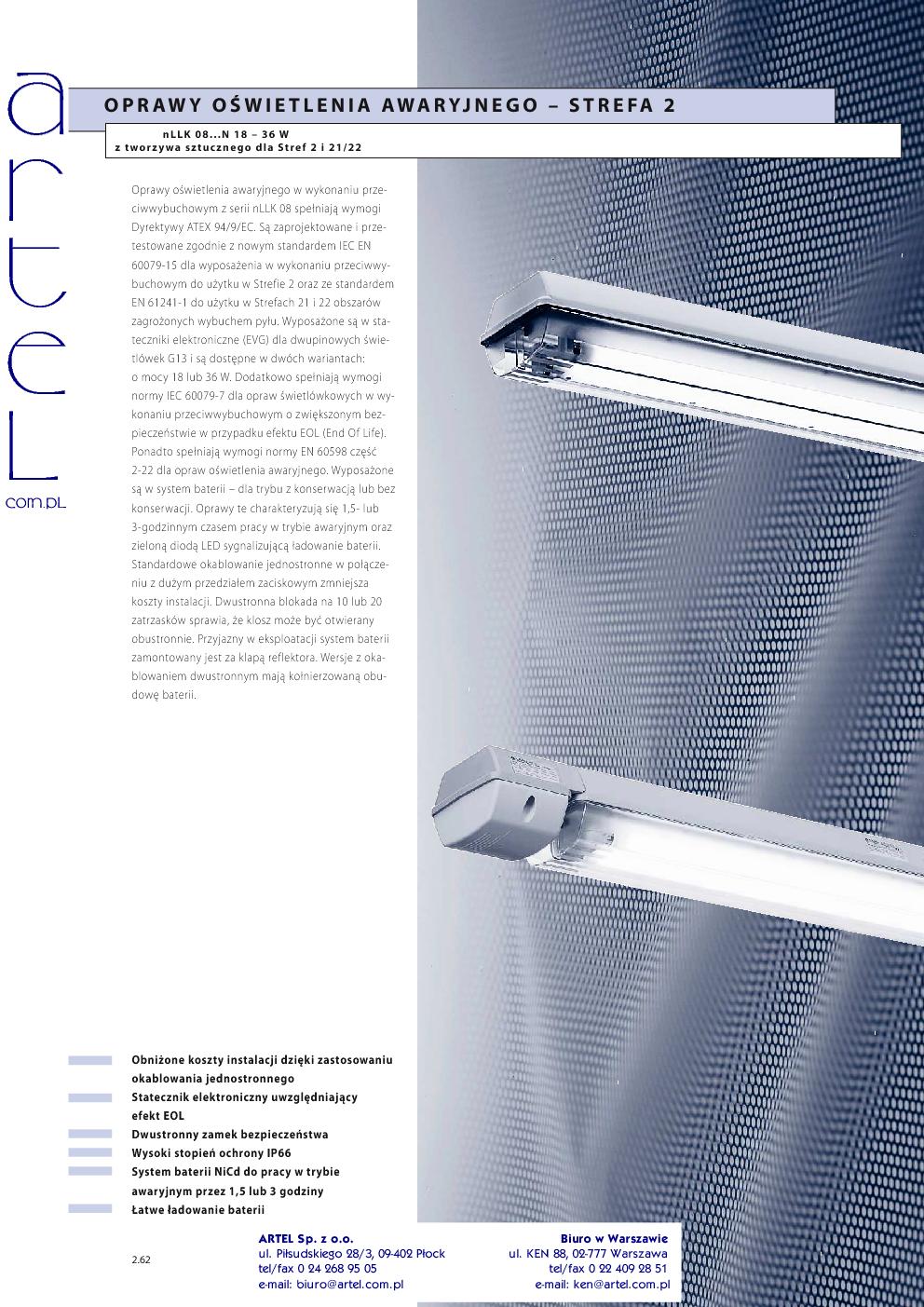 Oprawy do strefy 1/2 typu eLLK92: Oprawy awaryjne do strefy 1/2 typu eLLK92 NIB: Oprawy do sufitów podwieszanych do strefy 1/2 typu eLLB20: Oprawy awaryjne do sufitów podwieszanych do strefy 1/2 typu eLLB20 NIB: Oprawy do sufitów podwieszanych do strefy 1/2 typu RLF250: Oprawy awaryjne do sufitów podwieszanych do strefy 1/2 typu RLF250 N: Oprawy Ex-d do strefy 1/2 typu AB: Oprawy Ex-d do strefy 1/2 typu EVF: Oprawy do strefy 2 typu nLLK08: Oprawy awaryjne do strefy 2 typu nLLK08 N: